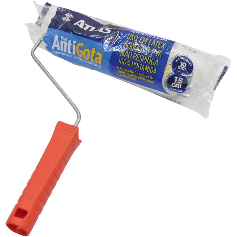 Detalhes: Rolo anti-gota produzido em poliamida tramada em tecido. Capacidade superior de retenção de tinta e cobertura do filme. Reduz o respingamento. Ideal para fino acabamento em superfícies lisas. Use com tintas acrílica, látex (pva) e esmalte.